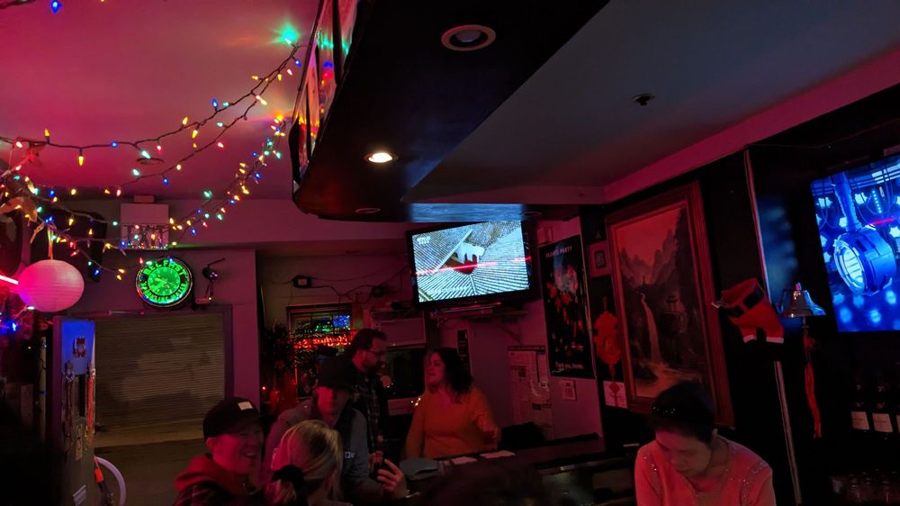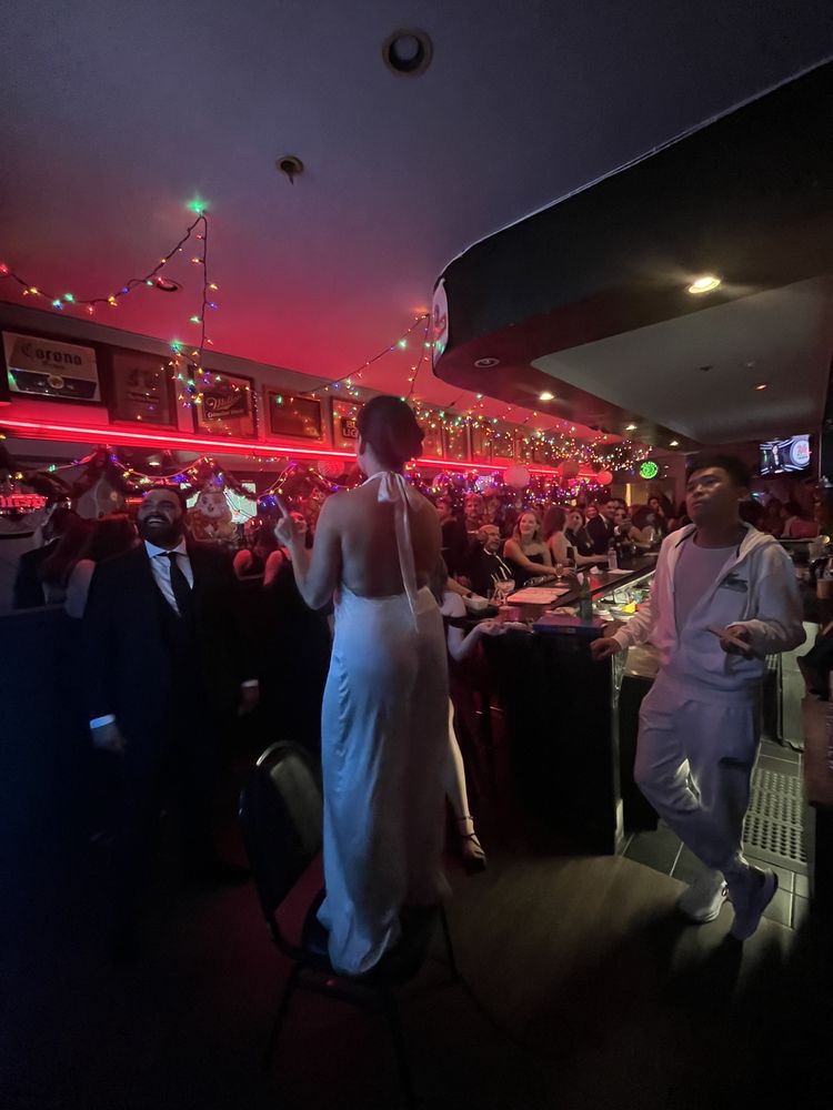Bow Bow Cocktail Lounge, located in San Francisco, is a vibrant cocktail bar that offers a unique karaoke experience. With a diverse range of amenities such as a full bar, pool table, outdoor seating, and a welcoming atmosphere for dogs, this spot is perfect for group gatherings or a night out on the town. The karaoke selection includes both Chinese and English songs, catering to a wide audience. Customers have praised the friendly staff, inclusive environment, and the seamless song request process. Whether you're looking to sing your heart out or simply enjoy the lively ambiance, Bow Bow Cocktail Lounge is a must-visit destination for a fun and entertaining night in the city.